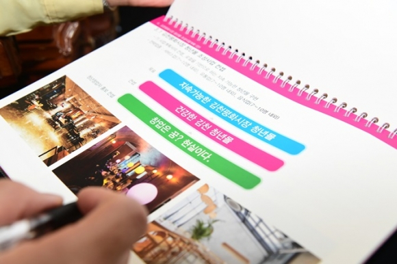 이날 보고회는 청년몰 조성사업 추진경과 보고, 김해용 사업단장의 사업 계획 보고 및 질의응답 순으로 진행되었으며, 지속가능한 김천 평화시장 청년몰 구현을 목표로 김천포도를 활용한 창업아이템 및 인테리어 등 컨셉에 관한 다양한 의견을 나눴다.