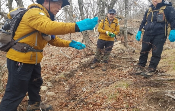 김천시(시장 김충섭)는 수도산에 활동 중인 반달가슴곰 KM-53(일명 오삼이)의 서식지 안정을 위해 불법엽구 제거 및 산지 정화 활동을 실시했다.