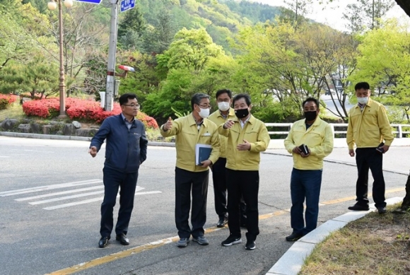 김충섭 김천시장이 대항면 향천리 보행로 미개설 구간과 구성∼대항간 도로 개설 현장을 방문해 시정 현안을 살폈다.