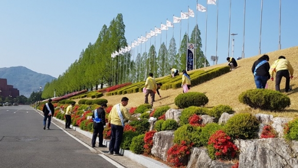 김천시(시장 김충섭) 스포츠산업과 및 원도심재생과 직원 60여명은 29일 김천종합스포츠타운 대청결 운동을 실시했다.