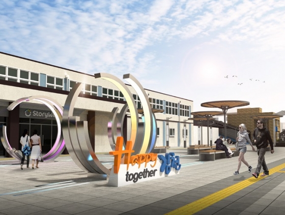 시민 축제의 장(場) - 공연장(무대) 설치각종 축제 시에 활용할 수 있는 공연장(무대)을 설치하여 김천을 찾은 방문객이나 시민들에게 즐거움을 선사하고, 역 주변 평화로 상가나 평화시장 등 인근 재래시장의 활성화와 연계시켜 나갈 계획이다. 특히, 공연장은 우천 시나 야간에도 사용할 수 있도록 무대에 지붕을 씌우고 조명을 설치하고, 무대 뒷부분에도 세로로 조명을 설치하여 무대공연 시 축제 분위기를 고조시키는 역할을 하게 될 것이다.