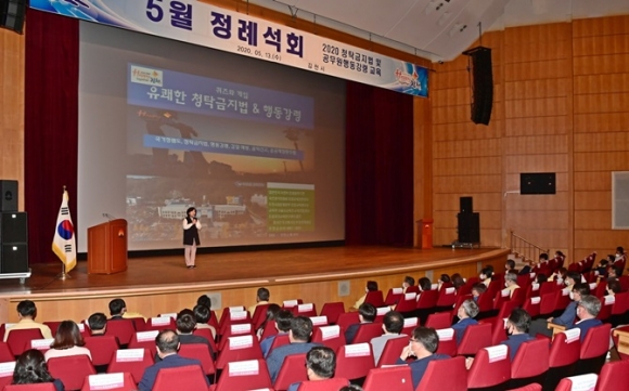 김천시(시장 김충섭)는 13일 김천시문화예술회관 대공연장에서 전 직원을 대상으로 공직사회 청렴분위기 확산을 위한 공직자 청렴교육을 실시했다.