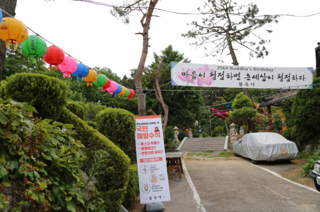 봉죽사는 석가탄신일 봉축 법요식을 앞두고 25일부터 집중 방역에 돌입했다. 행사당일은 사찰 입구에서 발열체크와 마스크착용, 출입명단을 작성하도록 했다. 또 손 소독에 이어 일회용비닐장갑을 끼고 입장할 수 있도록 했다.