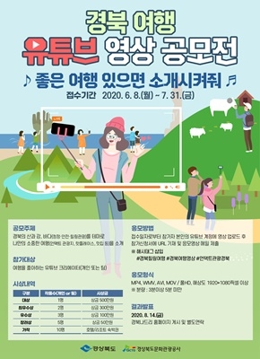경상북도와 경북문화관광공사가 경북만의 특색이 있는 숨은 관광지를 발굴하기 위해 8일부터 7월 31일까지 ‘경북여행 유튜브 영상 공모전’을 개최한다.