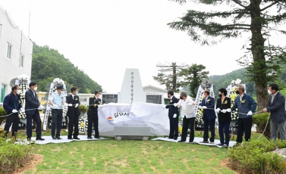 김천시는 12일 오전 11시 증산면 유성리 증산치안센터에서 증산 전몰경찰 충혼비 제막식을 가졌다. 이날 제막식에는 김충섭 시장, 우지완 경찰서장, 강희만 재향경우회장 및 경우회 회원, 유가족, 지역주민 등 100여명이 참석한 가운데 진행됐다.