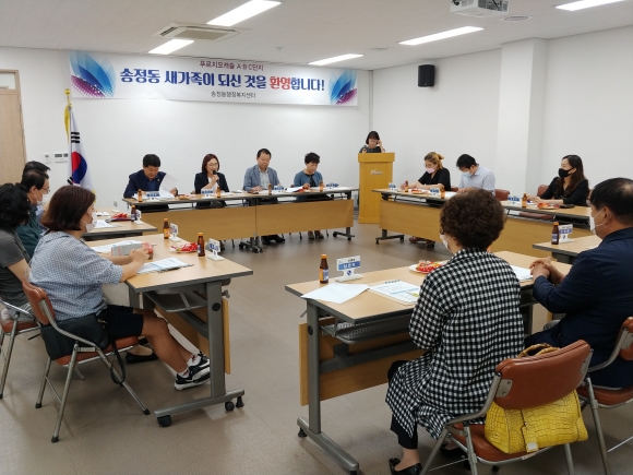 송정동(동장 박인순)이 10일 송정동 행정복지센터 2층 회의실에서 시의원, 푸르지오캐슬 A·B·C단지 자치회장, 관리소장, 통장 등 20여명이 참석한 가운데 푸르지오캐슬 주민 간담회를 개최했다.