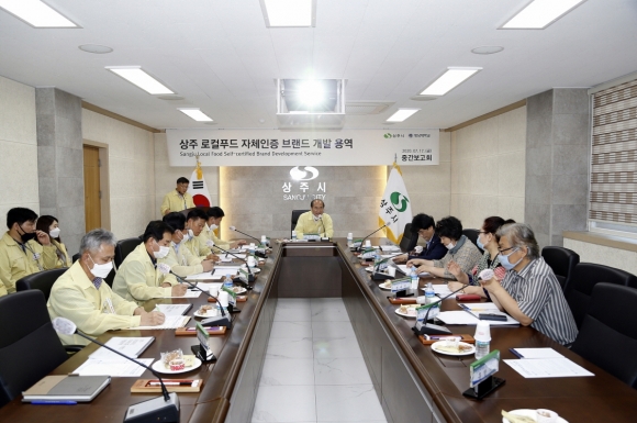 상주시(시장 강영석)가 지난 17일 시청 소회의실에서 시장, 시의원, 로컬푸드 직매장 운영단체, 용역 관계자 등 20여 명이 참석한 가운데 ‘상주 로컬푸드 자체인증 브랜드 개발 연구 용역’ 중간 보고회를 가졌다.