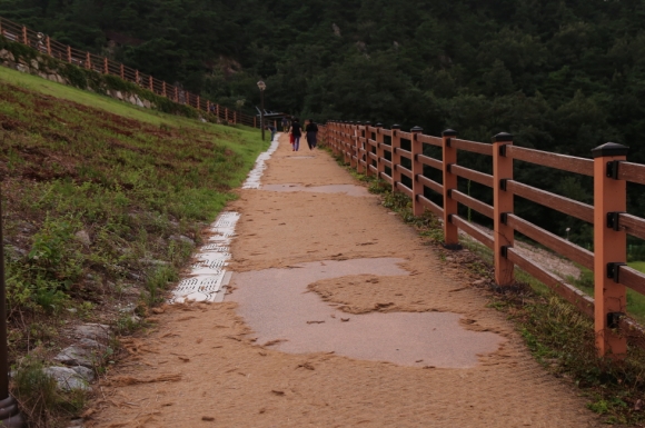 구미시 관계자는 “올레길은 흙 콘크리트 위에 경사가 급한데다 이용객이 늘면서 보행매트의 수명이 단축된 것 같다”며 “예산이 없어 아직 교체계획을 세우지 못하고 있다. 추경이 확보되는 대로 교체하도록 하겠다”고 밝혔다.