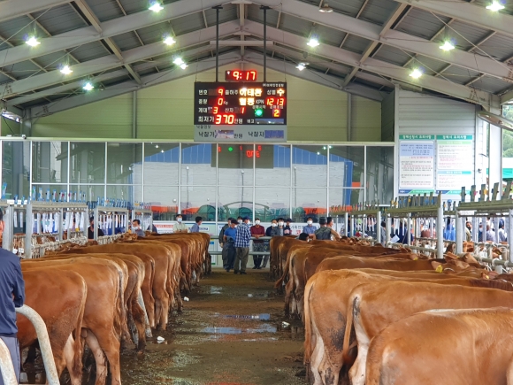 또 가축시장에는 코로나19 확산을 막기 위해 출입차량 소독, 출입자 체온 측정, 마스크 착용, 방명록 작성하고, 식당과 휴게실을 폐쇄하는 등 방역수칙이 지켜지는 가운데 이뤄졌다.