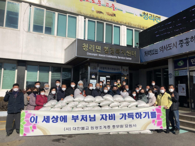 상주시 청리면에 소재한 묘원사(주지 원광 스님)가 지난 17일 쌀 20kg, 72포(400만원 상당)를 청리면(면장 사덕수)에 기탁했다.