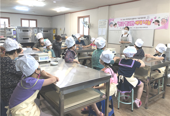 <빵긋 빵긋, 세대 나눔>은 6월부터 10월까지 5회로 진행, 돌봄터 이용 아동과 국민연금공단 수급자 모임의 할아버지 할머니를 1대1 매칭, 베이킹 프로그램을 함께 진행해 돌봄터 이용 아동들에게는 노인세대에 대한 긍정적 이미지와 함께 세대 교감을 통한 인성교육의 기회를 제공하고 동시에 역할상실로 무력감에 빠져있는 수급자에게는 새로운 역할을 부여하는 계기가 됐다.