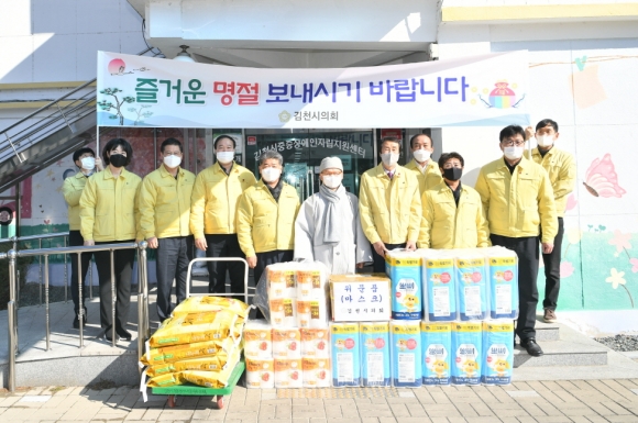 김천시의회(의장 이우청)가 3일 민족 고유의 명절인 설을 맞아 어모면 중증장애인자립지원센터를 방문해 온정의 손길을 나눴다.