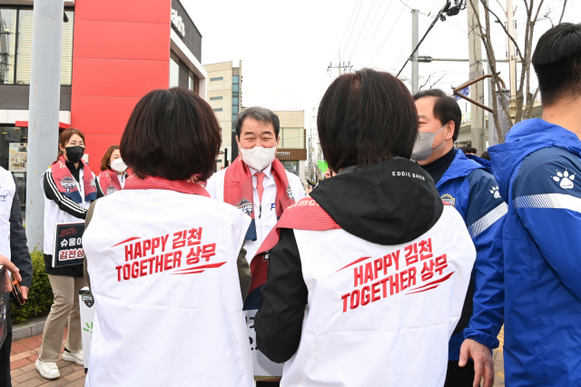 | ↑↑ 김천시 서포터즈가 김천상무프로축구단의 K리그 홈 개막전의 성공적인 개최를 위해 홍보 활동에 나섰다. |