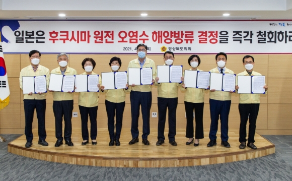 일본정부는 이달 13일 후쿠시마 제1원전의 방사성 오염수 해양방류를 결정하고 공식 발표했다. 이에 경상북도의회는 우리나라를 비롯한 중국 등 인근 국가와 국제사회의 깊은 우려에도 불구하고 이번 결정을 강행한 일본정부를 강하게 규탄하며, 해양 방류결정의 즉각 철회를 촉구했다.