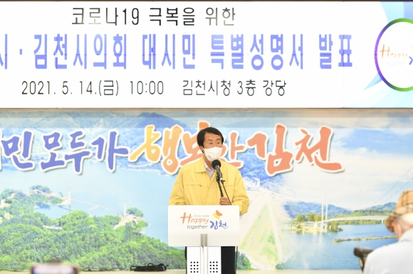 최근 김천시에서 확진자수가 급증하여 n차 감염의 위험이 커지는 일촉즉발의 상황이 유지되고 있어 5월 15일 0시부터 5월 23일 24시까지 9일간 사회적 거리두기가 2단계로 상향됨에 따라 시민들을 격려하고 방역수칙 준수를 당부하고자 긴급히 이번 성명서 발표를 진행하게 됐다.