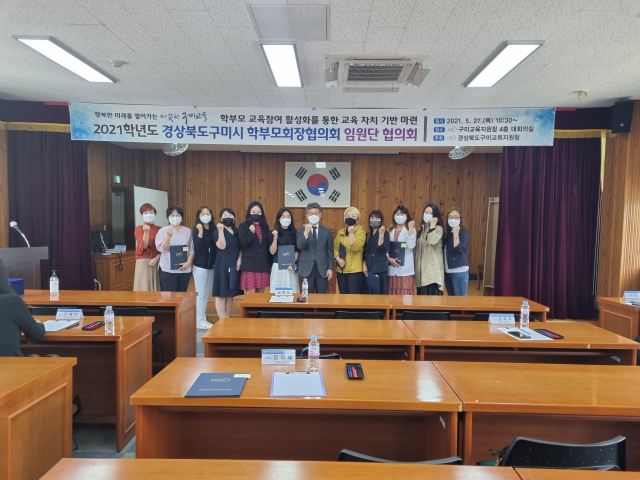 경상북도구미교육지원청(교육장 신동식)은 27일(목) 4층 대회의실에서 2020년, 2021년 학부모회장협의회 임원단 20여명이 참석한 가운데, 경상북도구미시학부모회장협의회를 가졌다.
