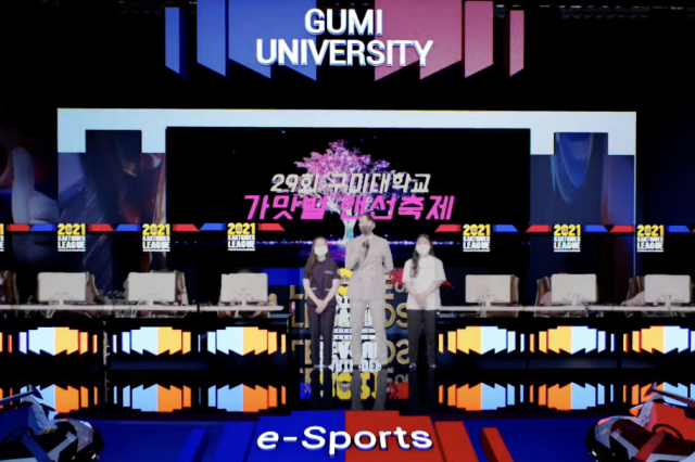 | ↑↑ 구미대학교 ‘제29회 가맛벌 랜선 축제’의 일환으로 펼쳐진 학과별 대항 e-스포츠대회 온라인 중계 장면. [사진:구미대제공] |