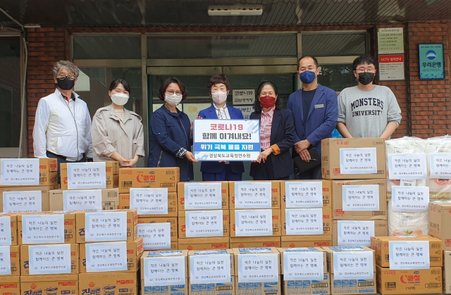 경상북도교육청연수원(원장 김옥례)이 14일 코로나19상황에 어려움을 겪고 있는 소외계층을 돕기 위해 삼성원을 방문해 생필품 등 물품을 전달했다.