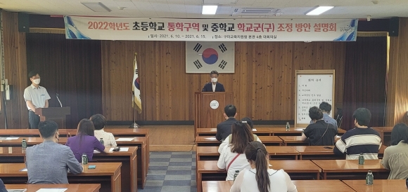 구미교육지원청은 지난 6월 10일부터 15일까지 총 4회에 걸쳐 구미시 중학군 소재 63개 초?중학교 학교장 및 6학년 부장교사, 학부모 대표를 대상으로 이 같은 내용을 골자로 하는 ‘2022학년도 초·중학교 통학구역 및 학교군(구) 조정 방안 설명회’를 열었다.
