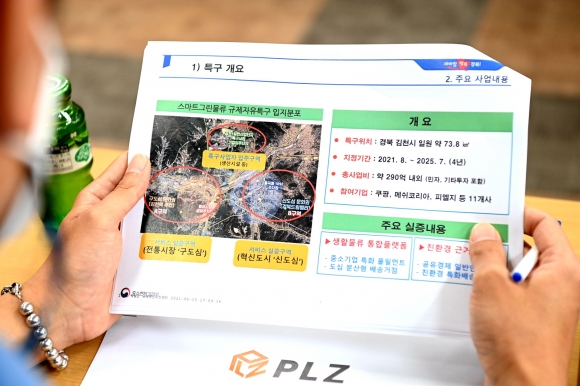 이번 주민설명회는 경상북도와 김천시, 경북테크노파크와 사업 참여기업인 메쉬코리아, 리턴박스, 피엘지 관계자 등 사업추진단과 전통시장 상인회 회장단이 참석한 가운데 사업설명 및 지역전통시장과 상생방안에 대하여 협의하는 자리이다.