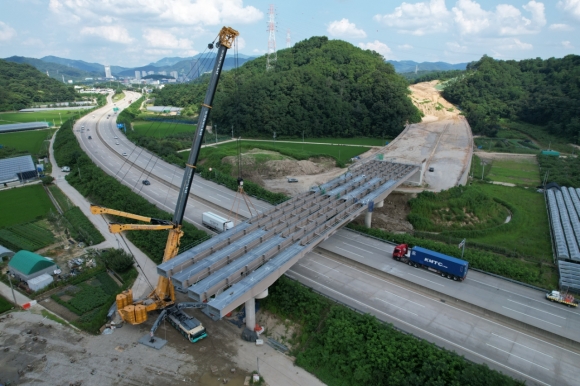작년 유례없는 긴 장마와 잦은 태풍의 영향에도 국도59호선 및 감천(甘川) 횡단 교량 거치를 완료했으며, 최근 공사구간 중 최고 난(難)공사인 경부고속도로를 횡단하는 교량(덕곡교)거치를 완료했다.