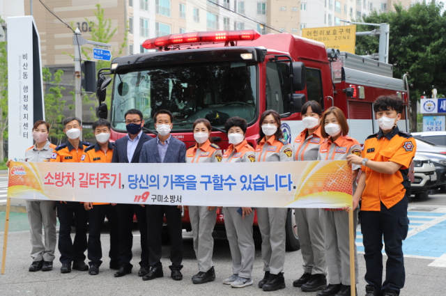 구미소방서(서장 한상일)가 지난 15일 소방출동로 확보를 위한 ‘소방차량 동승체험’을 진행했다.