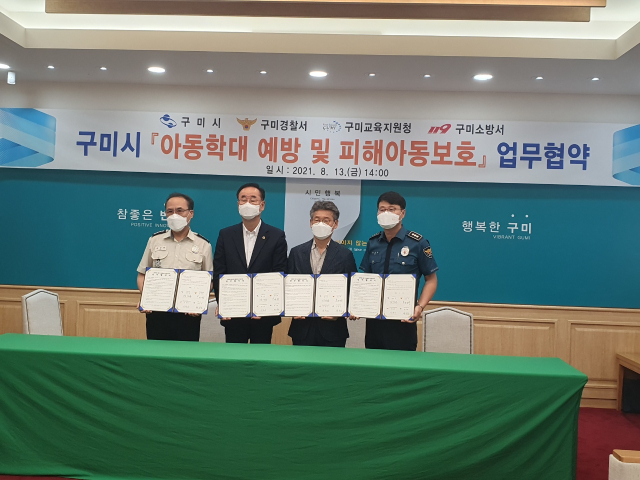 이번 업무협약 체결로 구미교육지원청, 구미시, 구미경찰서, 구미소방서는 학대피해아동 보호 및 아동권리보장을 위해 상호간 신뢰를 바탕으로 아동학대 대응 네트워크를 형성하고 신고접수, 긴급출동, 병원이송 등 원스톱 처리시스템을 구축했다.