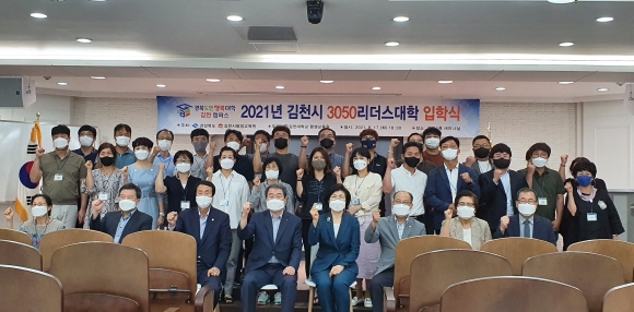 김천대학교(총장 윤옥현) 평생교육원(원장 김순희)에서 지난 17일 김천대학교 세미나실에서 김충섭 시장, 이우청 시의회 의장, 박판수 도의원, 윤옥현 김천대 총장 및 수강생 등 50여 명이 참석한 가운데 '2021년 김천시 3050리더스대학' 입학식을 가졌다.
