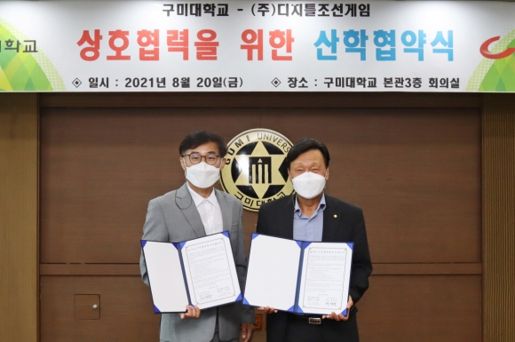 구미대학교(총장 정창주)가 20일 본관 3층 회의실에서 ㈜디지틀조선게임(대표이사 김봉현)과 산학협력 협약(MOU)을 체결했다고 밝혔다.