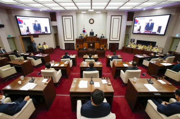 김재상 의장은 개의에 앞서 제102회 전국체육대회 주 개최지인 구미의 노력과 기대감에 비해 추진사항이 미흡한 점에 유감을 표하고, 집행기관에서는 이번 대회 추진에 대해 냉정히 평가해 향후 행정 추진에 만전을 기해 달라고 당부했다.