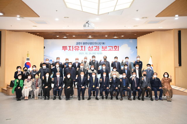 김천시(시장 김충섭)가 지난 26일 시청3층 강당에서 김충섭 시장과 김천시의회 이우청 의장, 김천상공회의소 안용우 회장을 비롯한 경제계 및 주요 사회단체장들이 참석한 가운데 김천일반산단(3단계) 투자유치 성과보고회를 개최했다.