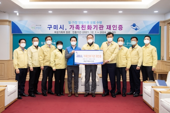 구미시가 1일 여성가족부로부터 가족친화기관 재인증 3년을 획득했다.