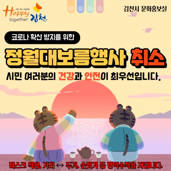 김천시가 코로나19 확산 방지를 위해 다음달 15일 예정되었던 정월대보름 행사를 전면 취소한다고 밝혔다.