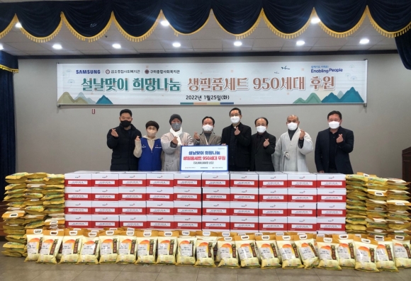 삼성전자스마트시티(구미사업장)가 25일 설날을 맞아 도움이 필요한 이웃들에게 나눔을 전하기 위해 금오종합사회복지관에 물품을 전달했다.