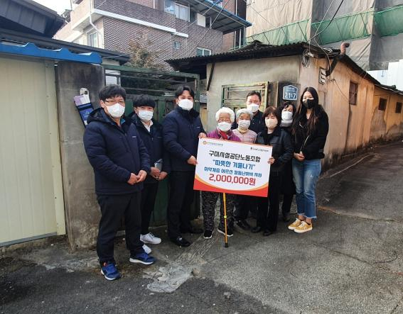 노동조합은 구미재가노인통합지원센터(센터장 성석현)의 협조를 통해 겨울철 난방유 부족으로 겨울나기에 어려움을 겪는 취약계층 어르신 9세대에 총 200만원 상당의 난방유를 지원했다.