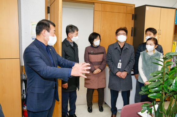 | ↑↑ 김재상 의장 등 구미시의회 사무국 직원들이 지난달 29일 구미보건소 방문, 애로상황을 청취하고 있다.(구미시의회 제공) |