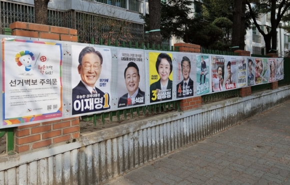 | ↑↑ 봉곡동의 한 초등학교 앞에 붙어있는 대선 선거벽보(경북문화신문DB) |
