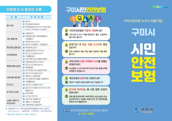 구미시가 시민 누구나, 예기치 못한 각종 재해·재난사고로 인한 피해를 보상할 수 있도록 시민안전보험에 가입했다.