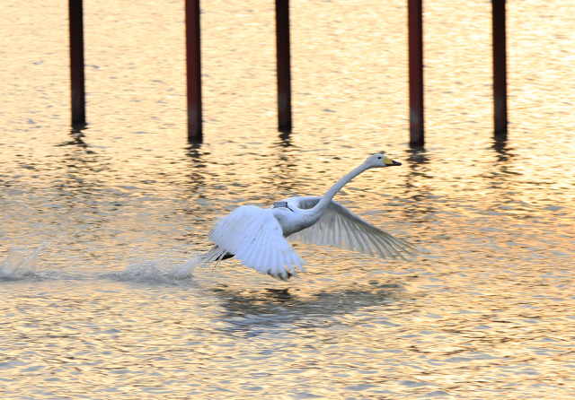 지난해 4월 지산 샛강에 홀로 남은 큰고니 ‘샛오르미’가 무사히 여름을 나고 무리들에 합류했다.