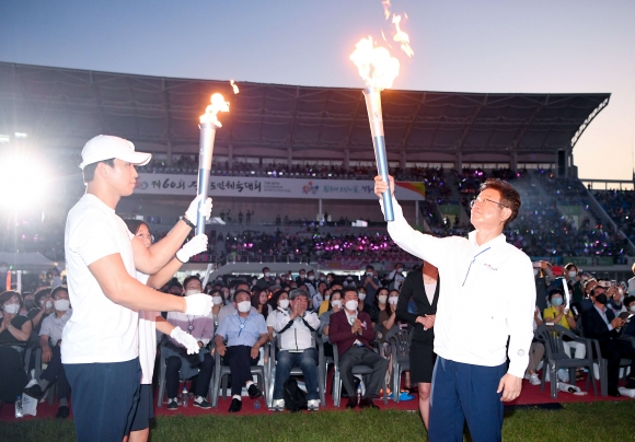 도민체전의 꽃인 성화봉송은 14일 포항 호미곶, 경주 토함산에서 채화를 시작해 2개 노선으로 포항만의 특색 있는 관광지를 순회하며 각계각층 시민들이 참여하는 봉송으로 이뤄진다. 성화봉송 주자로는 체육계 공로자 및 꿈나무 선수가 입장해 이철우 경북도지사 및 이강덕 포항시장이 성화합화 후에 최종주자로 리우 올림픽 동메달리스트 곽동한(유도, 포항시청) 선수가 성화점화를 진행한다.