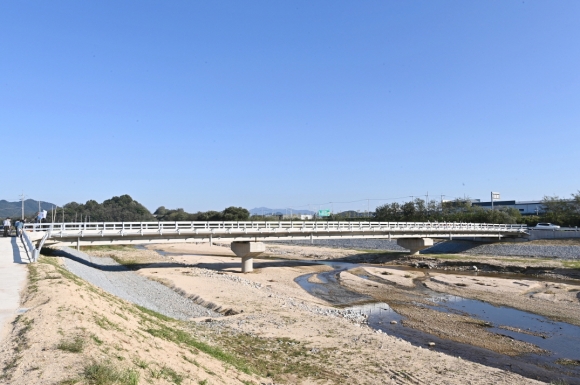 이에, 시는 2020년 설계를 시작으로 하천기본계획 변경 등 각종 인허가를 완료하고, 총사업비 25억 원을 투입해 지난해 6월 공사를 착공, 1년 3개월의 공사기간을 거쳐 폭 7m, 연장 85m의 교량을 완공했다.