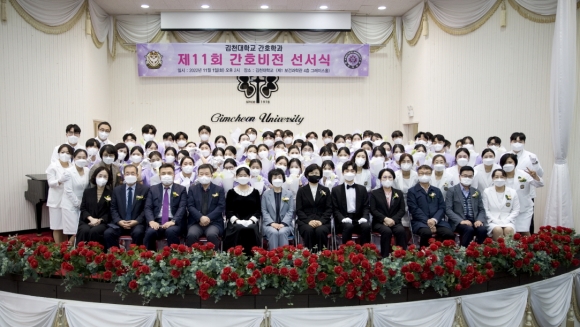 김천대(총장 윤옥현)가 이달 1일에 간호학과 117명을 대상으로 간호비전 선서식을 가졌다.