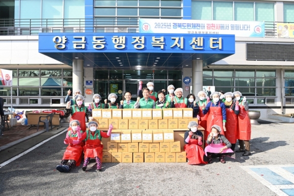 김천시 양금동 새마을지도자(회장 강준규)와 새마을부녀회(회장 방금주)가23일 ‘사랑의 김장담그기’ 행사를 가졌다.