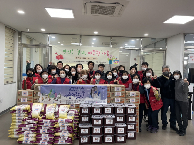 송정동(동장 김종연)이 지난 1일 겨울철 취약계층 50가구에 ‘맛있는 김치, 따뜻한 나눔’사업을 진행했다.