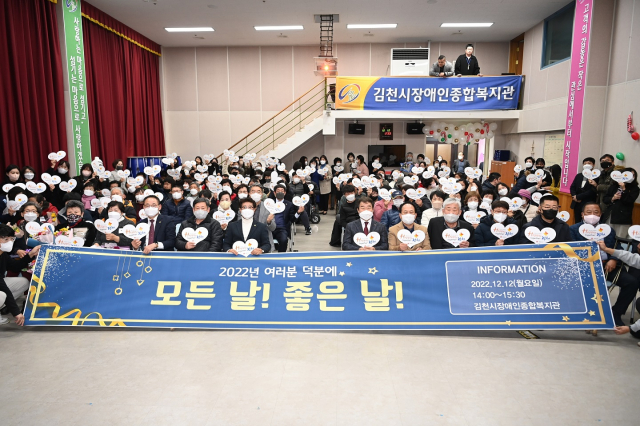 김천시장애인종합복지관(관장 안민)이 지난 12일 김천시 장애인종합복지관에서 ‘해피투게더 페스티벌 2022 송년행사’를 가졌다.