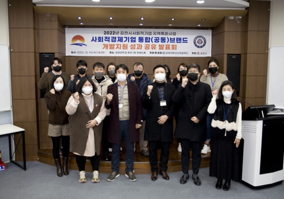 이날 행사에는 김천대학교 김천시사회적기업 지역특화사업 박희정 참여 교수, 김천시 사회적경제기업협회 남정대 협회장을 비롯해 사회적경제기업의 대표들이 참석해 사회적경제기업 통합(공동)브랜드 개발에 대한 성과를 공유했다.
