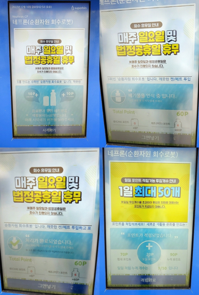 한편, 형곡동 주민 A씨는 “출근길이나 이른 아침마다 네프론 기계 앞에 큰 종이가방이나 봉지에 재활용품 가득 싣고 줄 서 있는 어르신들을 많이 봐요. 여기도 빨리 넣고 먼저 가려고 경쟁이 치열해요. 어르신들 덕분에 동네 페트병 같은 쓰레기가 줄어들어 좋아요.”라고 말했다.