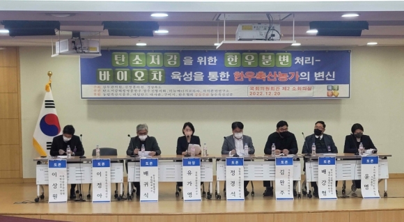 탄소저감해평명품한우·쌀추진협의회’는 20일 국회의원회관 제2소회의실에서 김두관 의원(경남 양산)과 신정훈 의원(전남 나주·화순)이 공동 주최한 가운데 '탄소저감을 위한 한우분변처리-바이오차 육성을 통한 한우축산농가의 변신'을 주제로 토론회를 열었다.