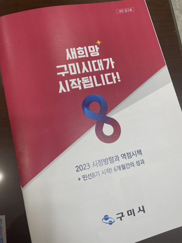 22일 아시아육상선수권 구미유치 시정 관련 기자 간담회에서 구미시가 배포한 '민선8기시작, 6개월간의 성과'에 지난 2일부터 1주일간 구미지역 곳곳에 현수막을 내걸고 대대적으로 홍보한 ''구미-수서KTX이음 1시간 50분에 간다'는 현수막 성과는 왜 빠졌을까.