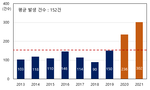 | ↑↑ 최근 10년간 방향·탈취제품 노출사고 발생 현황 |